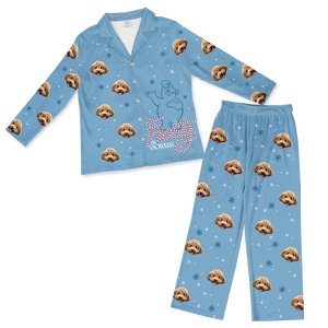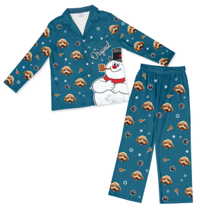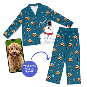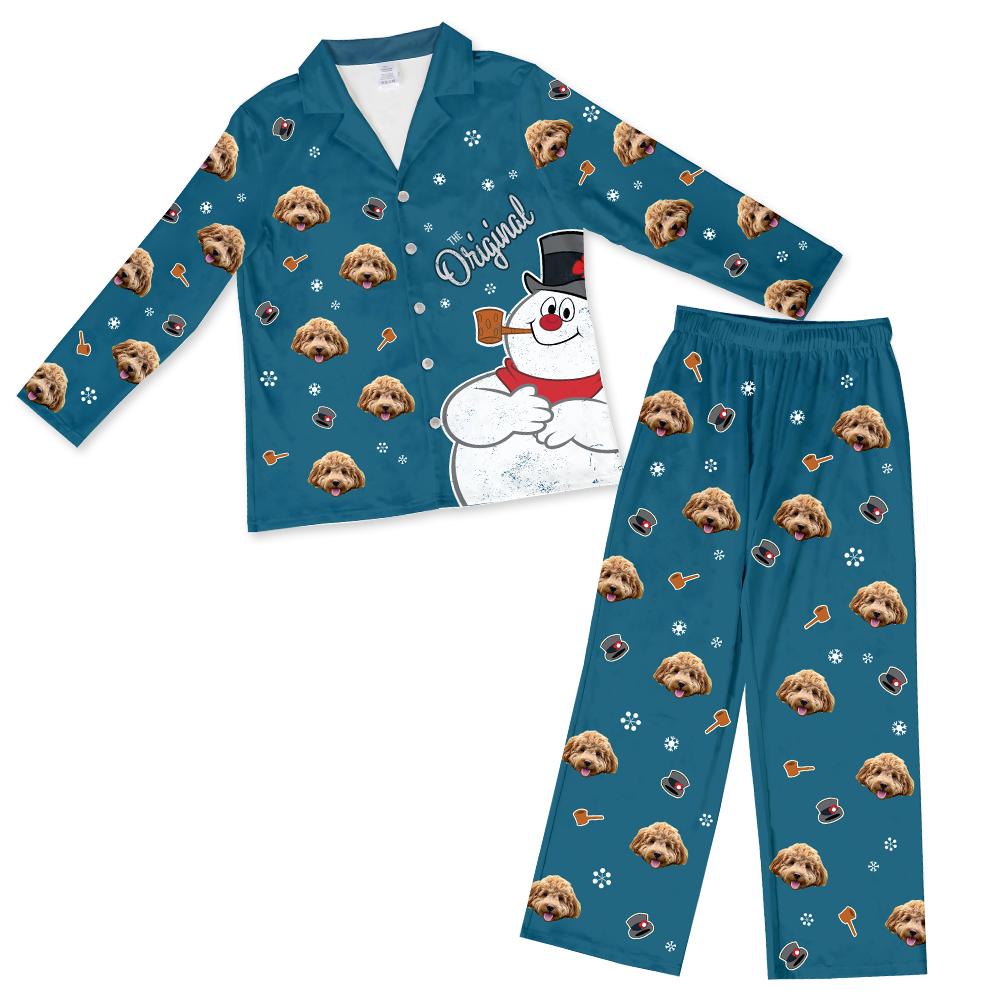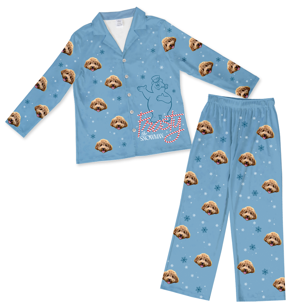 Each pair of Frosty The Snowman Button Down Pajamas can feature the face of one pet.