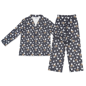 Réveillez-vous avec style avec notre pyjama personnalisé à imprimé animal de compagnie ! Nos pyjamas sont faits d'un mélange de tissus soyeux (96 % polyester/4 % élasthanne) et sont disponibles dans différents styles : manches courtes et short, manches longues et pantalon, ou toute combinaison des deux !