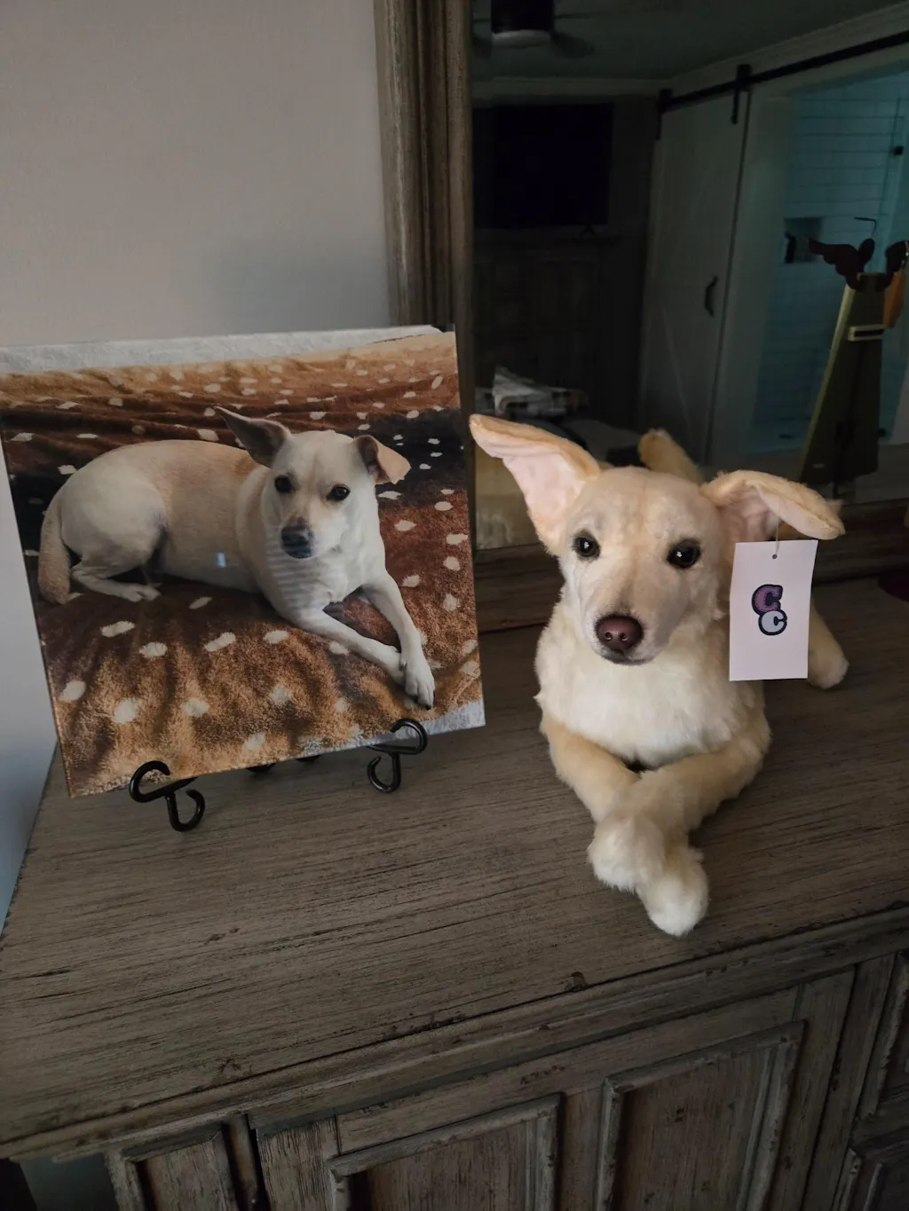 I lost my sweet little Lulu Shushu unexpectedly in February and it had been one of the hardest pet losses I’ve experienced. I was having the hardest time sleeping without her and just missing her in general. I ordered a cuddle clone of her so I had a way to still remember her and also so I could hold her while I sleep like old times. When I opened the package both my husband and I teared up. Right away I could tell it looked just like her especially from the back. The face is slightly different but I already expected there to be some slight differences but they did a really amazing job! The only thing is the cuddle clone is actually a little bigger than Lulu actually was but I did predict that would happen so I’m not upset about it. She was a 1 pound 11 ounce apple headed chihuahua and she never got any bigger. I’m definitely happy with my Lulu cuddle clone! I also love the tag that has her name+nickname I thought that was a sweet touch. Definitely worth it I really am happy with how she turned out!