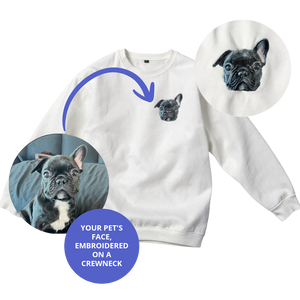 Cozy crewnecks designed for everyday wear that you’ll never want to take off. Our custom embroidery captures every detail of your pet in rich, full-color thread – creating a durable design that stays vivid and beautiful wear after wear.