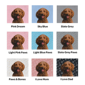Each custom pet blanket can feature the face of two pets.